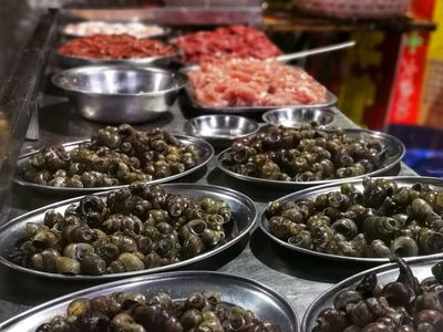 东山口夜市 东山口夜市位于揭阳市区东部,是当地最大的夜市之一。这里的夜宵种类繁多,包括各种烧烤、炖品、炒菜等,满足了不同口味的需求。