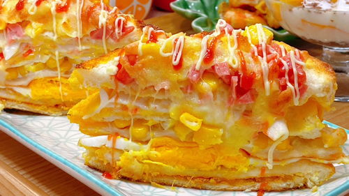 2、三鲜豆皮:是湖北武汉人早点的主要食品之一,也是民间极具特色的传统名吃。三鲜豆皮的色泽金黄透亮,外脆内软,油而不腻,软润爽口,滋味鲜美,含有虾、菇、肉香等丰富的食材。