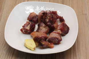 在大碗里装半碗清水,加一匙食盐溶解在水里,然后把腊鸭腿放在水中浸泡半个钟点以上。浸泡过的腊鸭腿洗净,抹干,切成小块;萝卜也成方块;生姜切片。